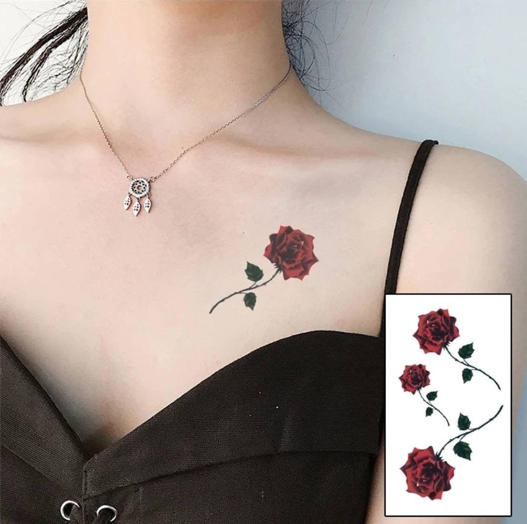Temporares Tattoo Velvet Rose 105 6 Cm Etsy De
