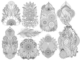 Premium Vector Set Of Mehndi Flower Pattern Decoration In Ethnic Oriental Indian Style Doodle Ornament Outline Hand Draw Illustration